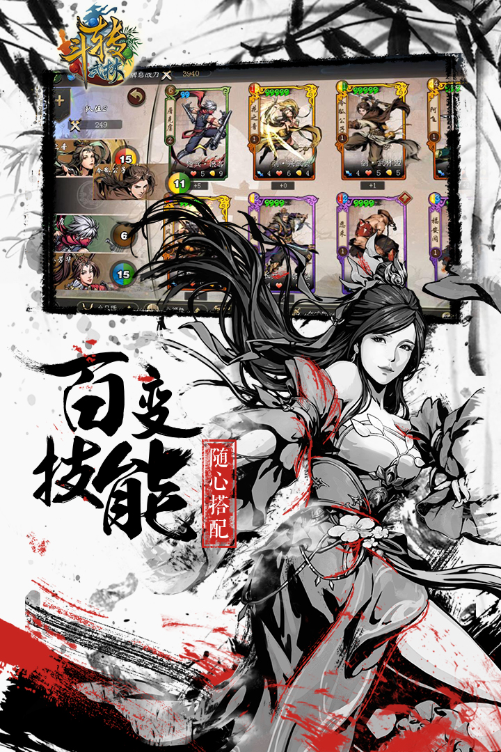 火影忍者血继网罗乐趣。任意组合搭配卡牌,斗转武林每张卡牌都有不同的斗转武林技能和属性